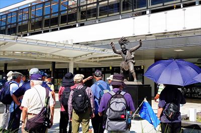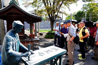 今回は、大きく変化している佐賀駅と佐賀市内の散策をしながら、平城である佐賀城史跡、 再建された佐賀城本丸歴史館(320 畳の大広間など)を見学しました。 駅前から街道に立ち並ぶ鍋島直正と直正を支えた賢人たちの銅像(12か所に設置)と対面し、 佐賀藩の歴史的活動や幕末維新期の激動の時代に、日本の近代化に貢献した先人たちの活躍も振り返ることができました。 佐賀の店先や道のかたわらなどでよく見かける恵比須像。その数は、佐賀市内だけで830 体以上!「恵比須の数日本一」。 おおらかな恵比須さん、 “えびす顔”でのんびり町歩きをしました。 佐賀インターナショナルバルーンフェスタの佐賀バルーンミュージアムで小休憩 、佐嘉神社へ、360度見学できる佐賀県庁最上階のSAGA360 展望フロアーから佐賀県内、 遠く有明海、雲仙などを見学し佐賀を満喫しました。 参加者25名(小林英次) |