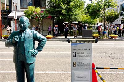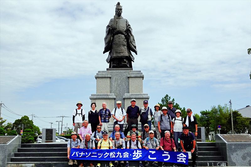 ![]() 平野二郎國臣像前での集合写真 |
